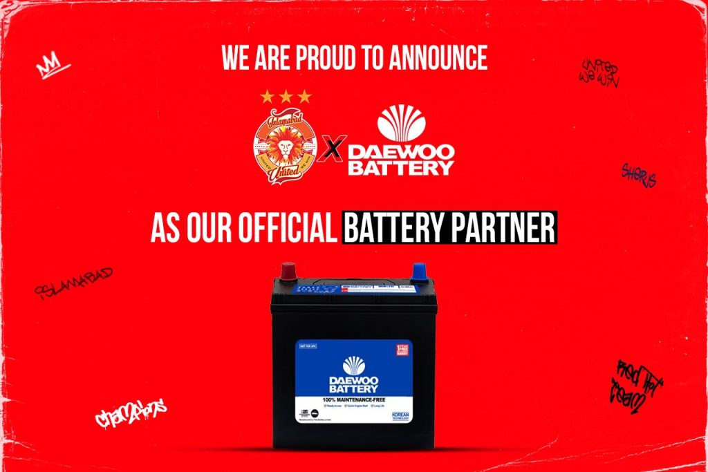 Lahore, 7th April 2025 – Islamabad United, the most successful franchise in HBL PSL history and the winner of the first, third, and ninth editions of the tournament, is proud to announce its partnership with Daewoo Battery as the Official Battery Partner. This collaboration highlights the shared values of both organizations in promoting excellence, performance, and energy, both on and off the field.