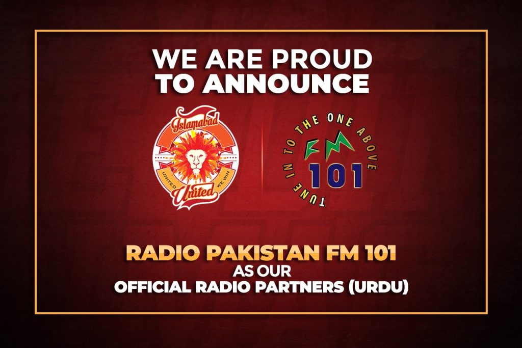 As part of the partnership FM 101 will have access to exclusive content from Islamabad United, including appearances by Islamabad United stars on its programming. FM 101 will also help in the promotion of the Islamabad United brand in the lead up to, and during, the fifth season of the HBL PSL.