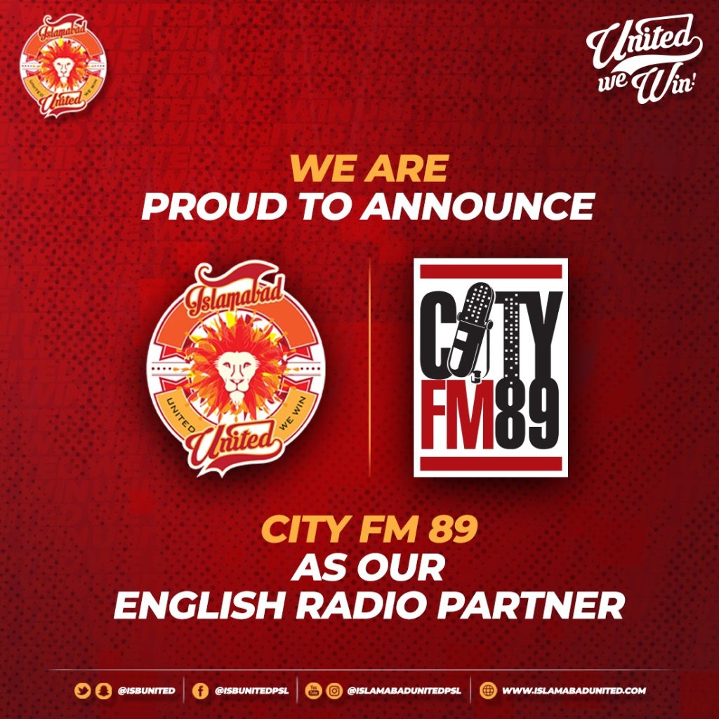 As part of the partnership FM89 will have access to exclusive content from Islamabad United, including appearances by Islamabad United stars on its programming. FM89 will also help in the promotion of the Islamabad United brand in the lead up to, and during, the fourth season of the HBL PSL.