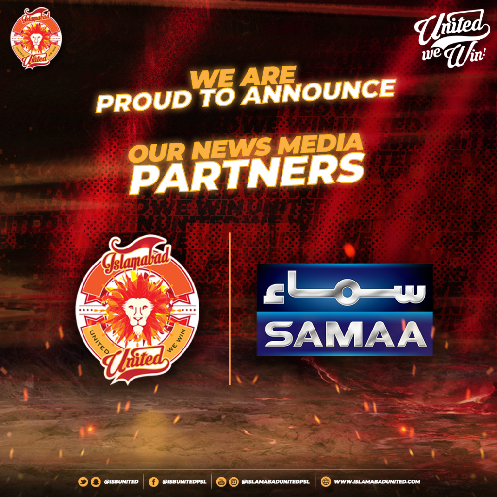 As part of the partnership Samaa TV will have access to exclusive content from Islamabad United, including appearances by Islamabad United stars on its shows. Samaa TV will also help in the promotion of the Islamabad United brand in the lead up to, and during, the fourth season of the HBL PSL.
