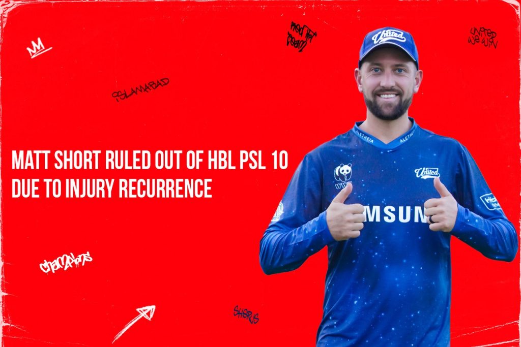 Islamabad United regret to announce that Australian all-rounder Matt Short has been ruled out of the remainder of the HBL PSL 10 due to a recurrence of the injury he sustained during the IC Champions Trophy earlier this year.
